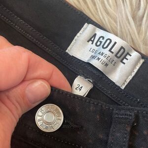 Customized agolde bleach washed black jeans. Size 24. Good preowned condition with no flaws. High rise.