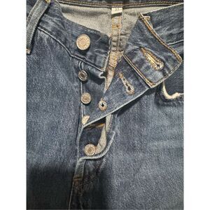 AGOLDE button fly blue jeans raw distressed hen size 27