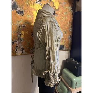 Agora Champagne Pleated Dressy Blouse With Rhinestone Buttons Dramatic! XL