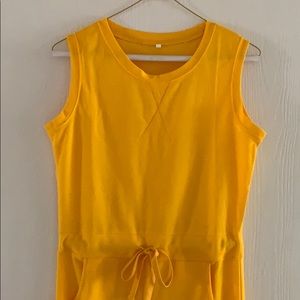 Brand new never worn. Brought in grey and Liked the grey better. missed the return date for the yellow one. Perfect condition! Yellow dress, Cotton/poly blend, Ties at waist, Above knee length, O-neckline.