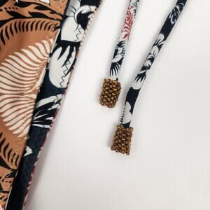 The bottom of the tie strings are beaded