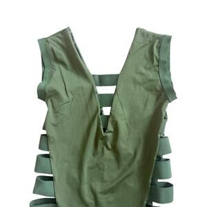 Preowned size small one piece from Agua Bendita. Army green. Sexy cutouts on side and front with a deep v in the back. Can even be worn as a bodysuit with a pair of shorts.