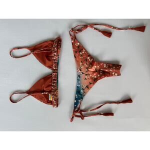 Agua Bendita Bikini Set Lisa Ornit Top and Bottom Hand Embroidery Size S