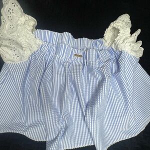Elegant blue and white stripes. Features a textured design. Stylish and versatile.