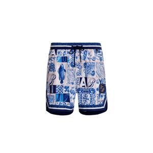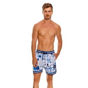 The Dan Men's Trunk features a coastal-inspired placement print with printed brand motifs, offering a stylish yet functional design. With an elastic waist and adjustable fit, these trunks include side and back pockets for convenience. Side trim details and logo accents add the finishing touches, making them perfect for beach days and beyond.