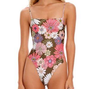 Agua Bendita Floral One Piece Swimsuit - Pink, White, Brown