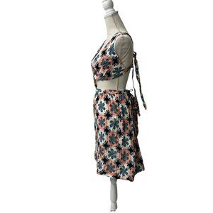 Agua Bendita Floral-Print Mini Dress With Tie-Back & Waist Detail Size 1X