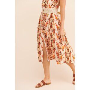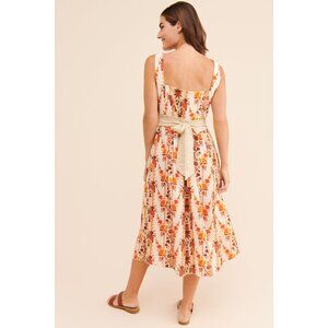 Agua Bendita Goldenrod Button Midi Dress Jazmin Orange Cream Womens Size Large