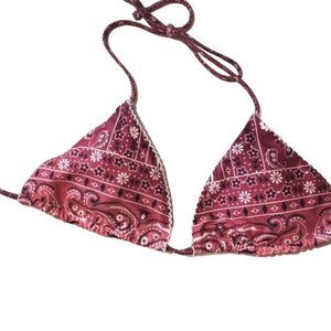 Agua Bendita Maroon & White Bandana Print Triangle String Bikini Top S