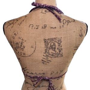 Agua Bendita, Itsy Bitsy Teeny Weeny Maroon & White Bandana String Bikini Top S