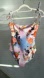 that can be reversed to a whimsical swirling side for versatile styling. Self-tie straps and beaded trim