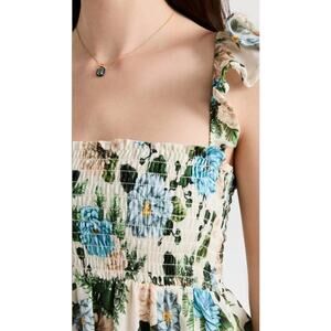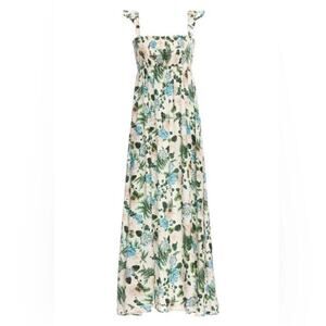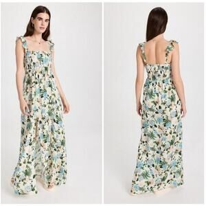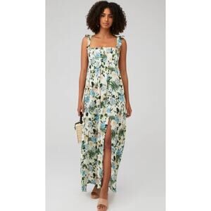 Agua Bendita Leandra Aine Dress Size S Ivory Floral Maxi Front Slit Sundress