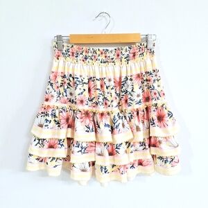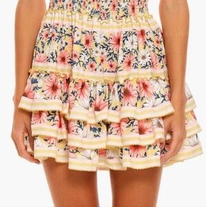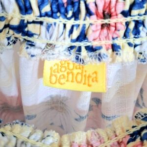Worn twice, great used condition, cut out Tags for comfort, women's size medium. The Maona mini skirt from Agua Bendita is the ultimate beach party skirt. Made in Colombia from floaty fabric with a floral print, has a wrap-around playful ruffled mini skirt. Pull on, full skirt.