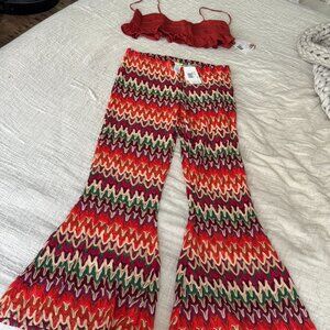 A truly striking cover-up option, these pointelle Agua Bendita pants are detailed with a wavy mix of multicolor stripes, and finish with flared cuffs that accentuate their vintage-inspired look.