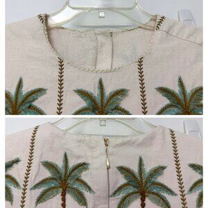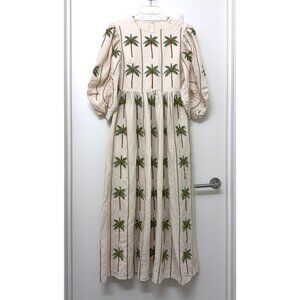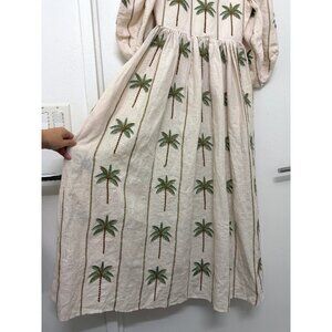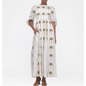 Agua Bendita Raquel Maxi Dress Palm Tree Floral Embroidered Linen Ivory XS