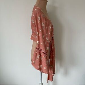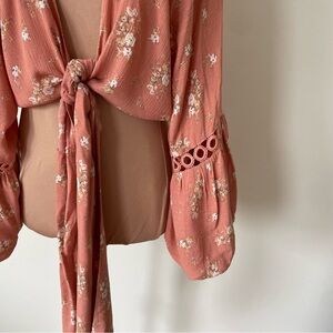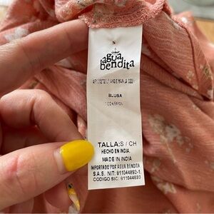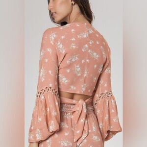 Agua Bendita Resort Angie Manila Floral Print Cropped Tie Bell Sleeve Top NWT S