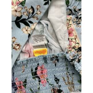 Agua Bendita 'Violet' Blue Viscose Mini Skirt Size S: unlined, pull-on styling with elastic, smocked back waistband, measurements: 11.5 inch width x 13.5 inch length.