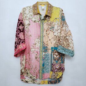Agua Bendita Women's Chrissy Linen Blend Button Front Top in Merzin Size Small