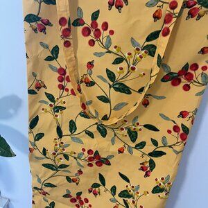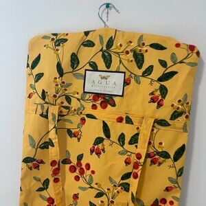 Agua Bendita Yellow Floral Print Garment Bag. Bright yellow with red and yellow floral print. Foldable garment bag. Zip closure.