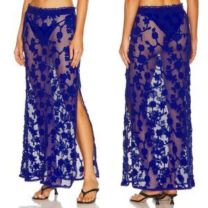 Agua Bendita x REVOLVE Cyprus Maxi Skirt in Navy Floral Dark Blue Sheer Lace M