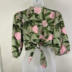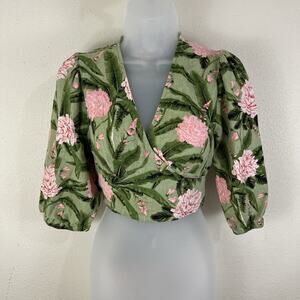 Agua Bendita x Target Peony Floral Wrap Top Linen Blend M Medium Tropical