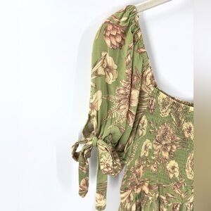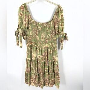 Agua Bendita x Target Smocked Green Floral Dress Size M Tie Sleeve Tiered Boho