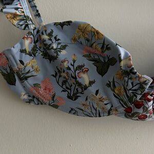 Features: floral or flower print, adjustable hook fastening at back, square cut, straight neck, lightweight, stretch, compression, feminine, designer, tropical, underwire, built in bra, ruffle sleeves or straps, adjustable straps, designer, high quality