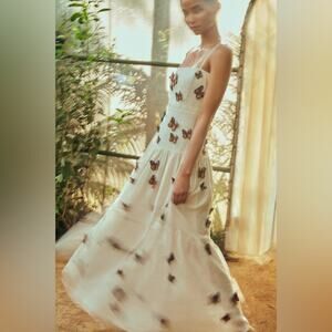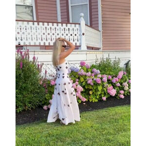 Agua By Agua Bendita Lima Embroidered Butterfly Linen Maxi Dress S