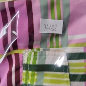 Color: Pink, white, green, yellow, and burgundy plaid pattern