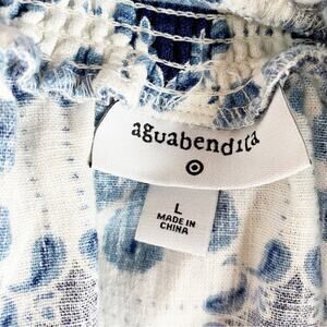 Agua Bendita X Target Coral Tile Skirt in blue and white. Pull on mini skirt with flat scalloped front and elastic back waistband. Side pockets. Size large. Excellent used condition. No flaws detected. Please check measurements provided for fit.