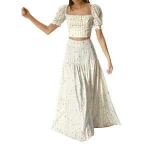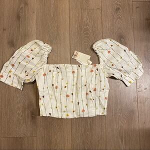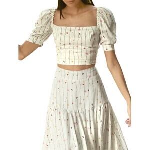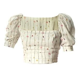 Agua by Agua Bendita Bolivar Enredadera Floral Embroidered Crop Top Blouse Small S S5
