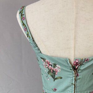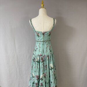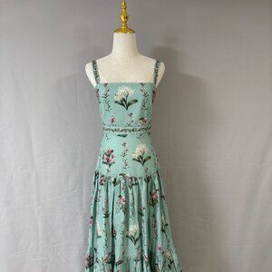 Agua by Agua Bendita Green layered linen maxi dress with Lima linen embroidery