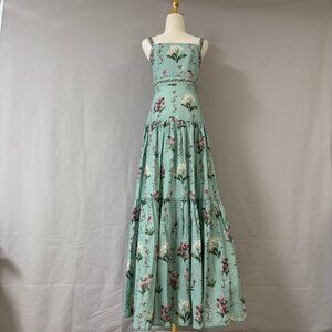 Agua by Agua Bendita Green layered linen maxi dress with Lima linen embroidery