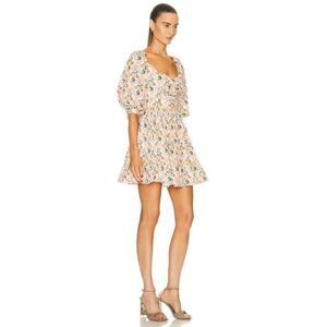 A voluminously proportioned Agua by Agua Bendita mini dress, featuring a light and lovely floral print and a sweetheart neckline. Keep your outfit understated by pairing this piece with flat sandals.