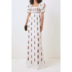 Agua by Agua Bendita Pistachio Dahlia Midi Dress Embroidered M