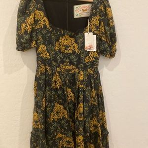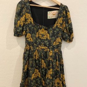 Very hard to find Agua by Agua Bendita Pomelo Mini dress. Black background with golden floral print. Never worn.