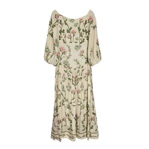 This Agua by Agua Bendita maxi dress is a stunning and romantic piece that offers effortless elegance and bohemian charm. Crafted with exquisite attention to detail, this dress combines delicate floral prints with a flattering silhouette. Pair with heels and minimal jewelry to complete the look.
