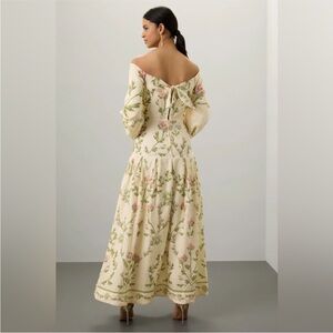 Multicolored (100% Linen) Casual dress. Off the shoulder. Long sleeves. Back zipper closure.