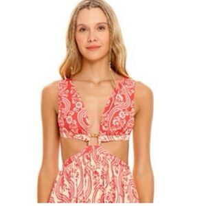 Agua Bendita Gillian Cut Out Mini Dress Cream Coral Womens Size Medium NWT