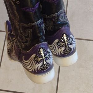 Aguila Real Botas Vaquera Boot leather Point toe western silver cross purple