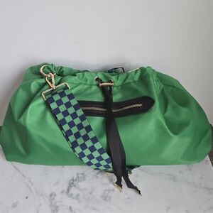 AhDorned, Kelly Green Designer Inspired Drawstring Nylon Crossbody Bag Tote