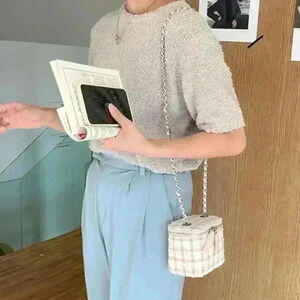 Pink Plaid Small Fragrance Bag with Crossbody Chain