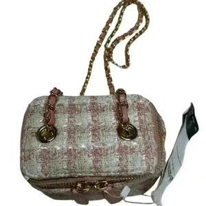 Ah-Dorned Pink Plaid Small Fragrance Bag with Crossbody Chain Zip Close