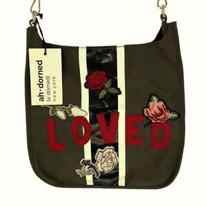 AhDorned Womens Nylon Loved Flower Patch Kenzie Crossbody Bag Military Green OS NWT