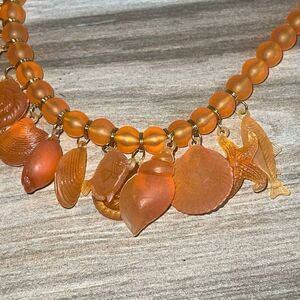 Ahbra Cale Collections Genuine Lucite Necklace Women’s Orange Sea Shell Nautical