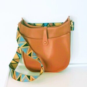 Ahdorned Camel Crossbody Messenger Bag Vegan Leather