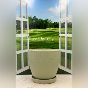 Dimensions: 6.5”H x 6.9”W, Opening 6.25”, weight 2lbs 14.4oz, Drainage hole, Saucer attached to the planter, Made in China , Materials: Ceramic, Color: Sage Green , Perfect for Indoor/Outdoor gardening, Don’t forget to dress up your plants 🪴