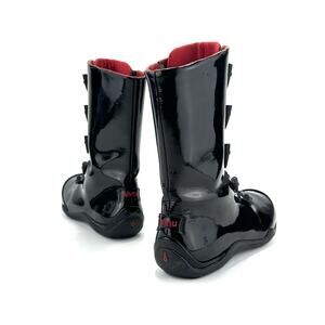 Ahnu Black Flat Winter Boot Size 7.5 Patent Leather Lace-Up Zip Closure Mid-Calf