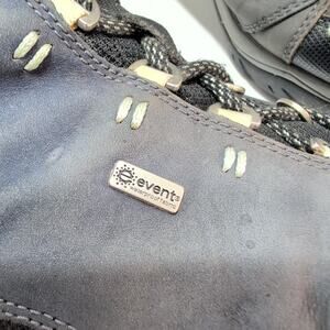 Tackle the trails in comfort with these Ahnu Montara boots. Designed for rugged use, the boots feature a rich midnight blue leather and textile upper that transitions beautifully between the smooth leather foot and the cozy, ribbed nylon ankle cuff. A subtle, yet functional detail is the e-vent waterproof fabric technology, providing reliable dryness and breathability for wet or snowy conditions.