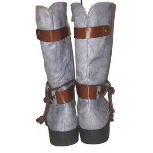 Ahongm Fashion Womens Lt Blue Faux Leather Cowgirl Boots Sz US 8.5 EU 39 Western Coastal Cowgirlcore Cow Girl Boy Cosplay Fairy FairyGrunge Grunge